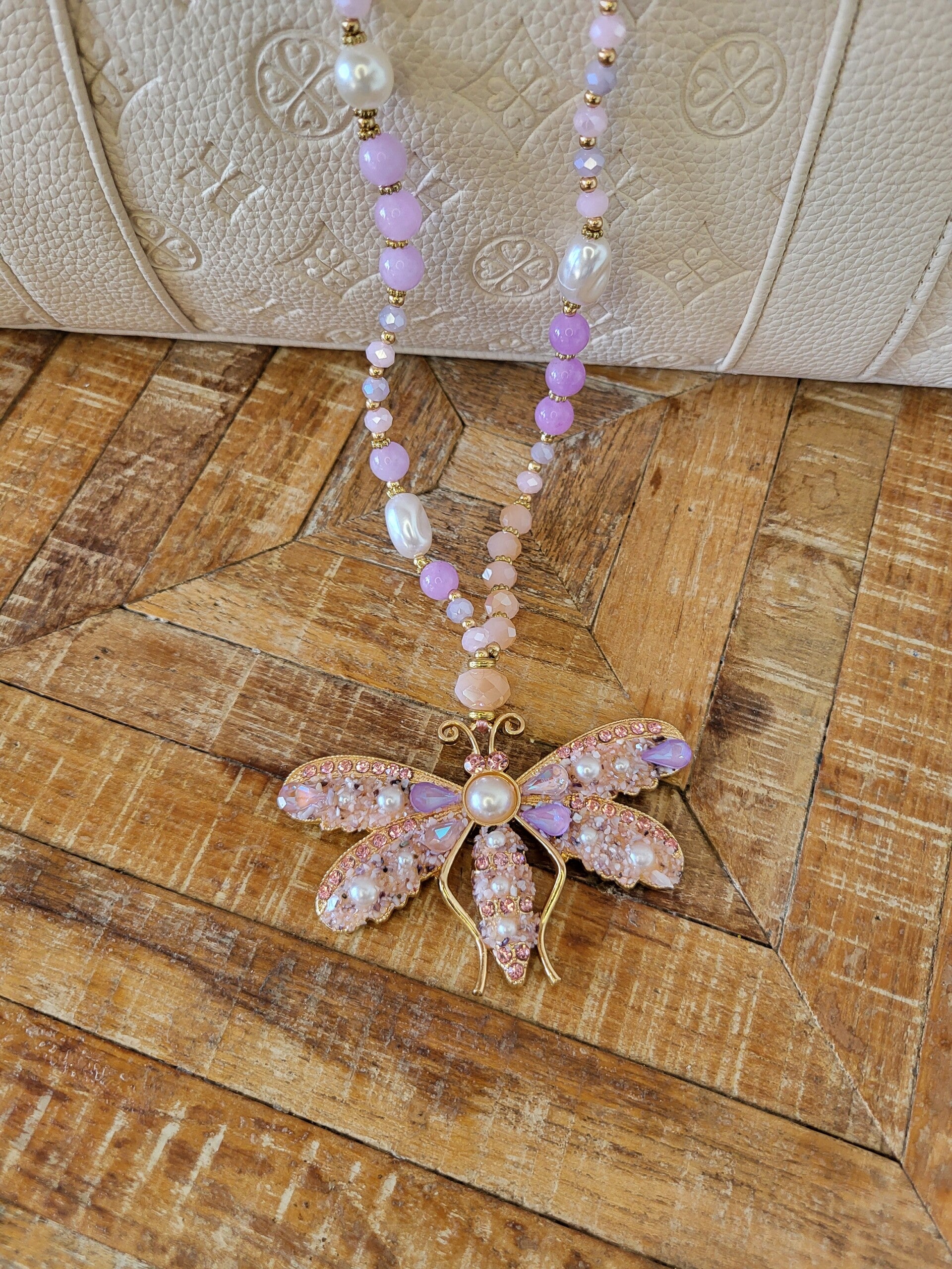 De nieuwe trend de lange ketting! Wij heben ze in vele kleuren. Deze ketting is goud afgewerkt met mooie kralen en steentjes.