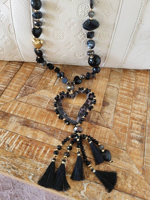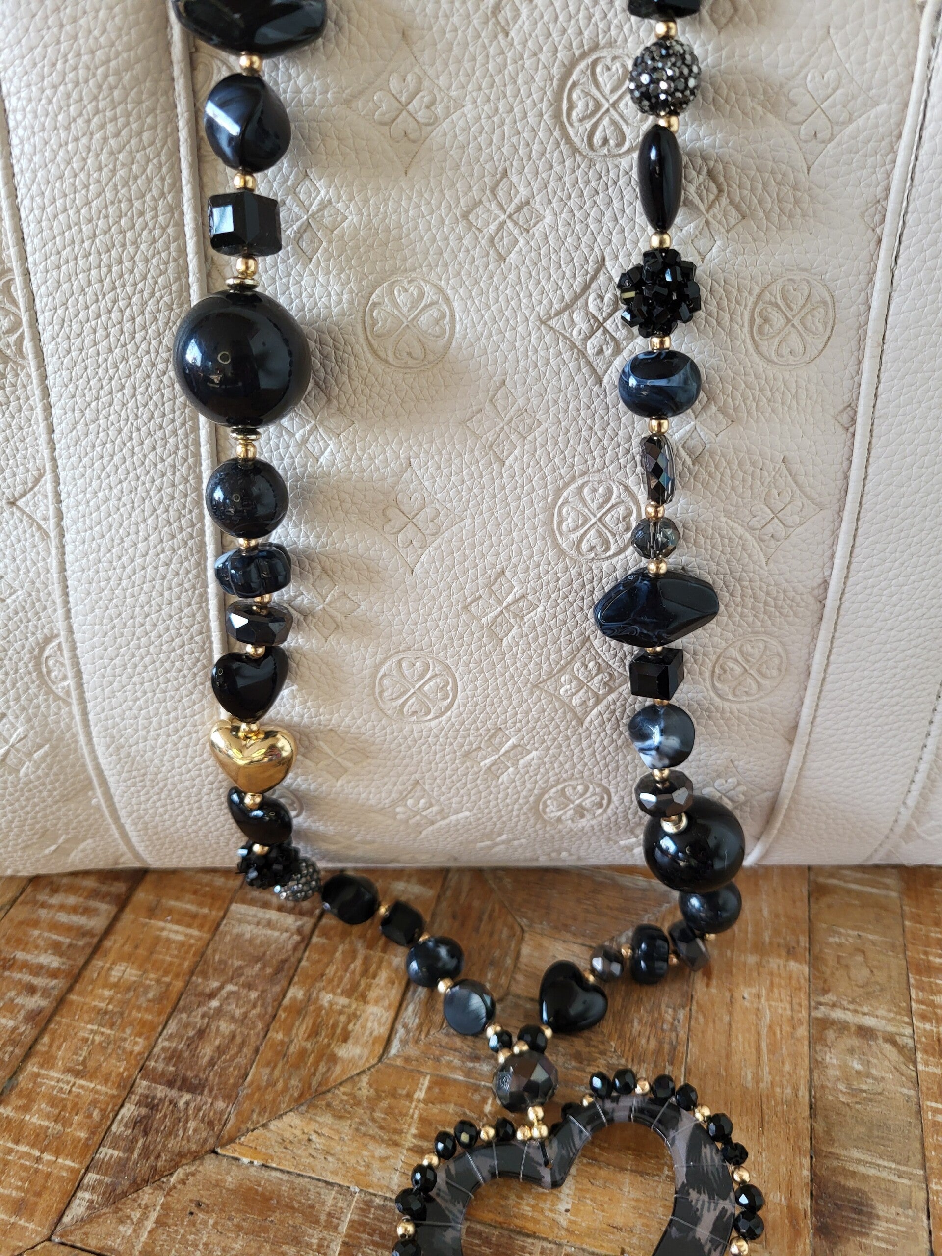 De nieuwe trend de lange ketting! Wij heben ze in vele kleuren. Deze ketting is goud afgewerkt met mooie kralen en steentjes.