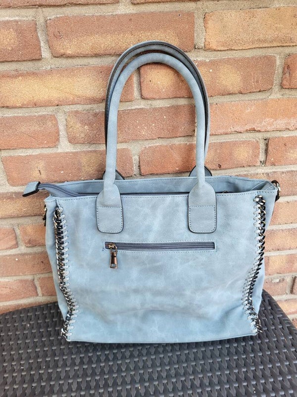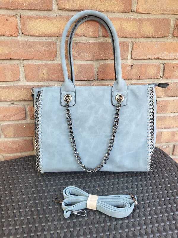 Trendy Hand- en Schoudertas met Kettingdetails – PU Leer – 35x28x11 cm blauw