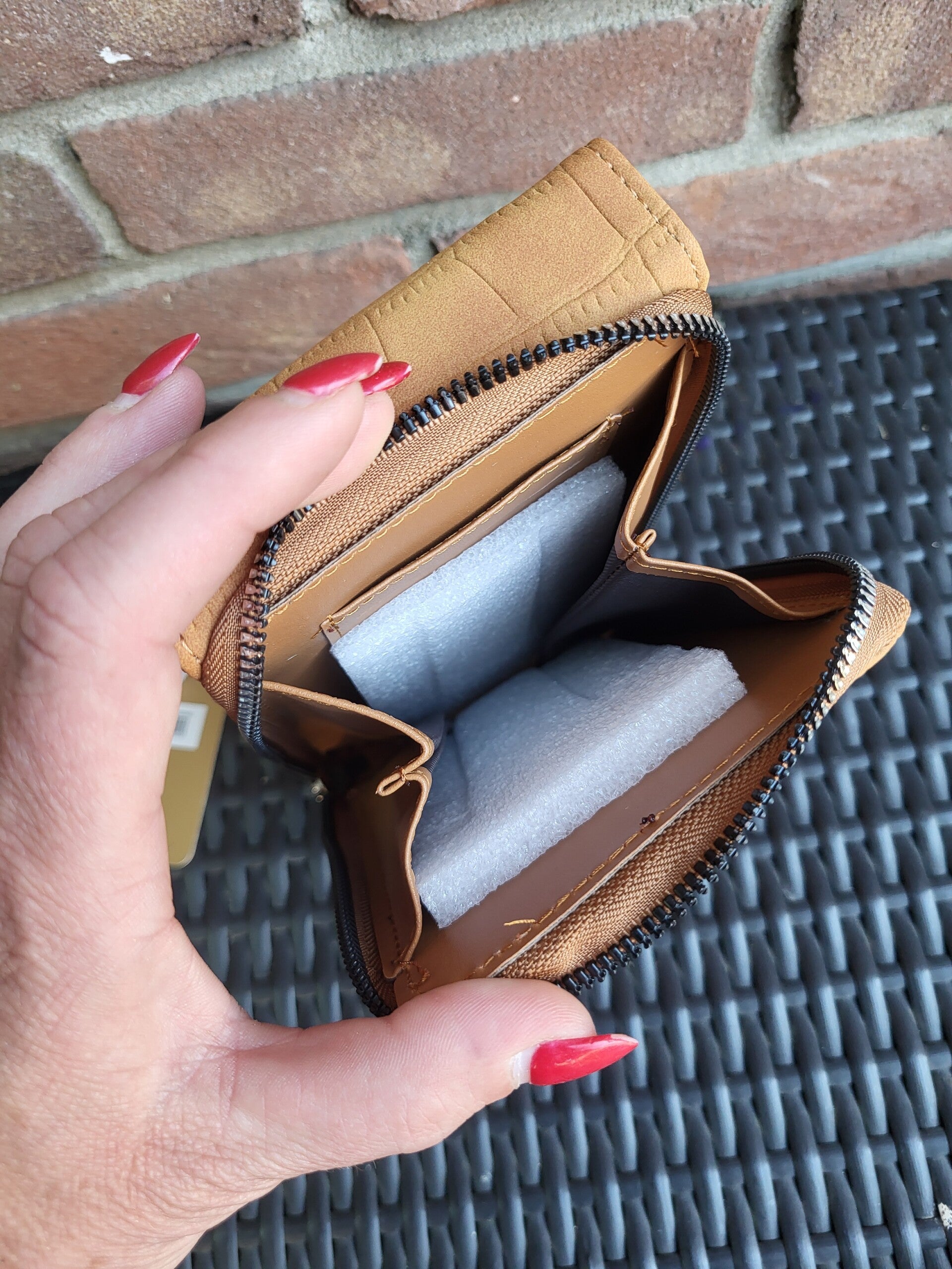 Achterop vind je een handig ritsvak voor muntjes of sleutels en binnenin ruimte voor pasjes, briefgeld of bonnetjes.