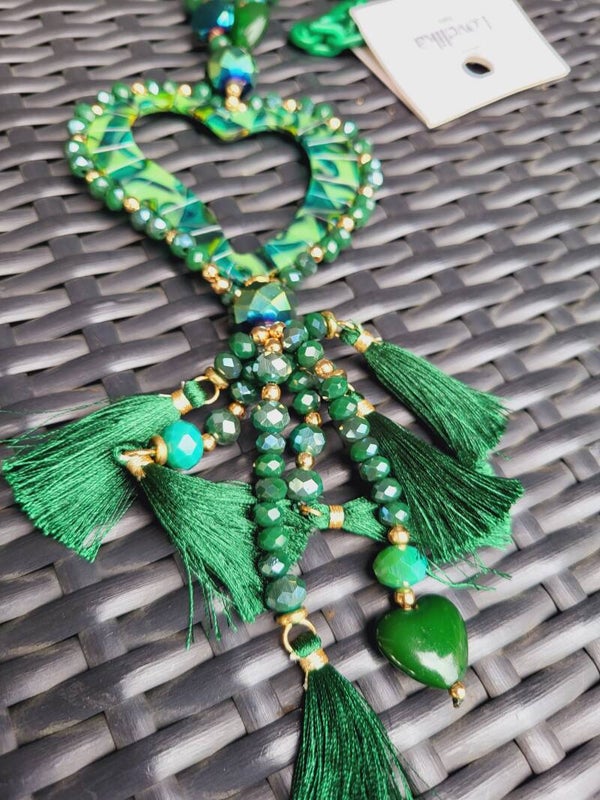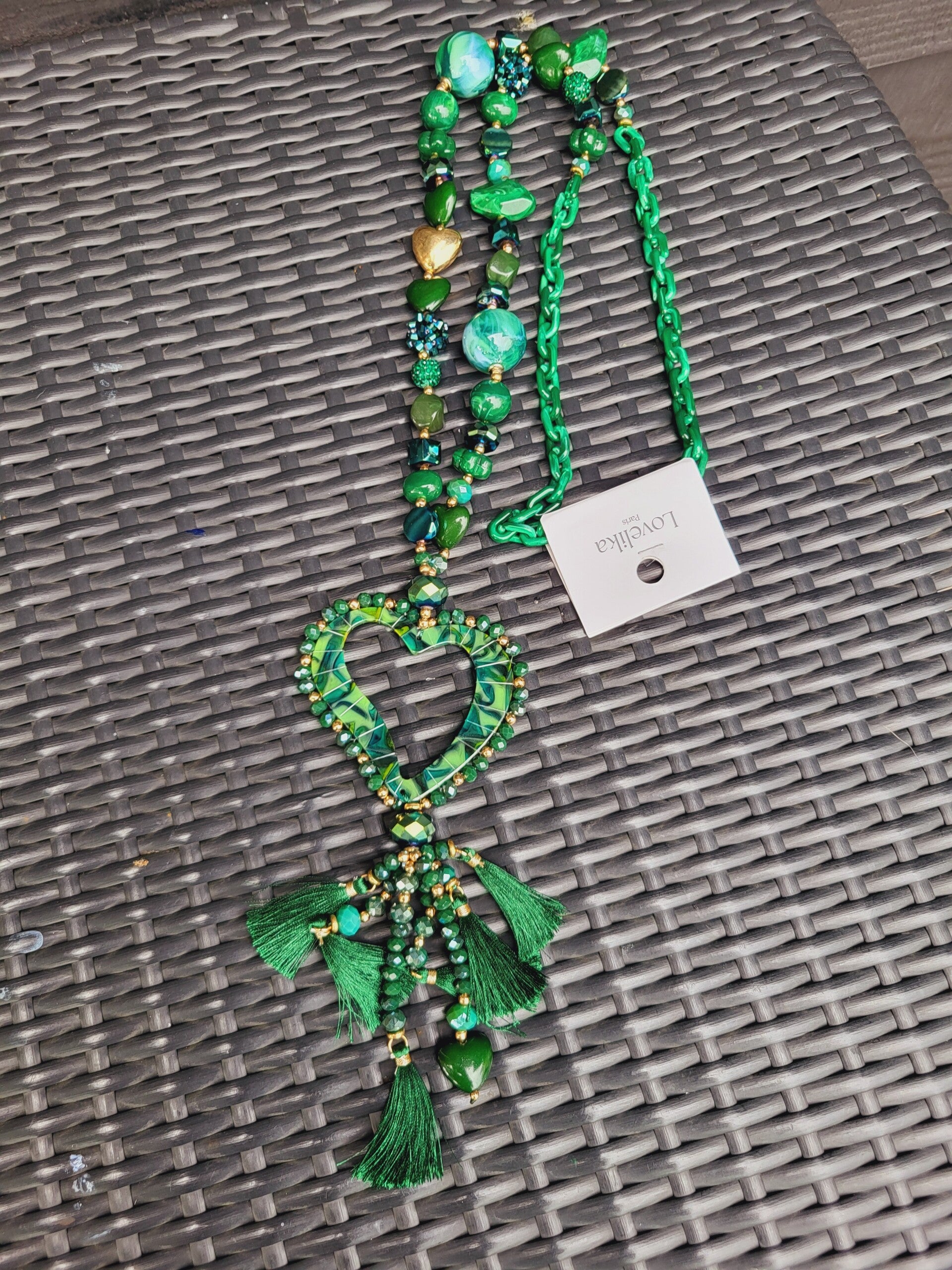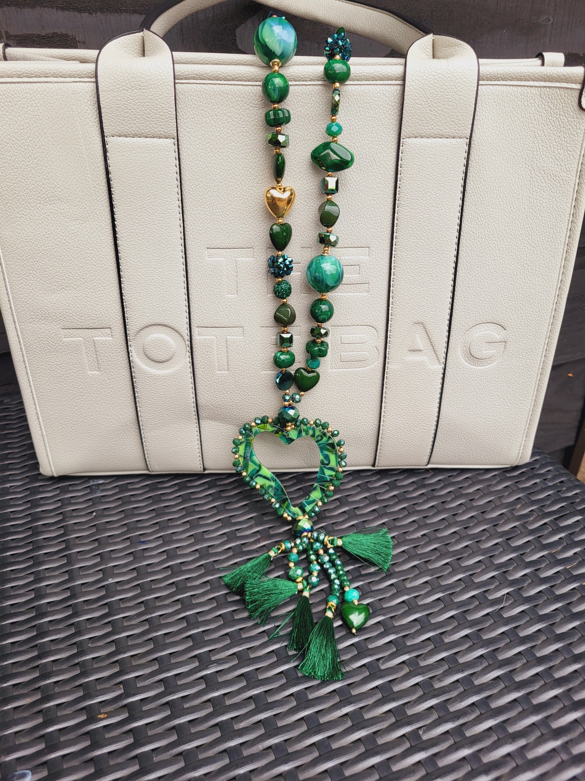 Op zoek naar een accessoire dat je outfit meteen laat stralen? Deze lange ketting is precies wat je nodig hebt! Met een speelse mix van glanzende glaskralen, kleurrijke kralen en een vrolijke tassel is dit sieraad een echte blikvanger. Iedere ketting heeft zijn eigen unieke samenstelling, maar één ding hebben ze gemeen: ze fleuren je hele look op in één keer.