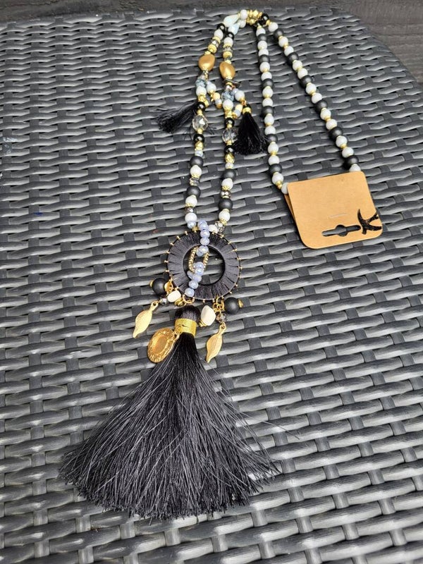 Lange ketting met tassel en kralen