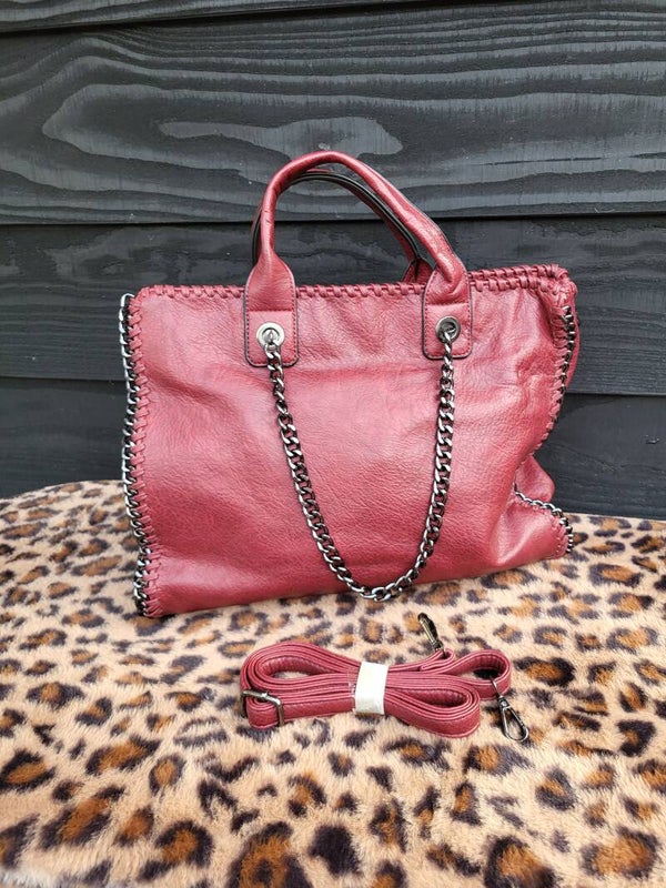 Deze trendy handtas met kettingen is dé must have accessoire voor iedere stijlvolle vrouw. De tas straalt luxe en elegantie uit dankzij de opvallende kettingdetails en kan zowel in de hand als over de schouder gedragen worden.