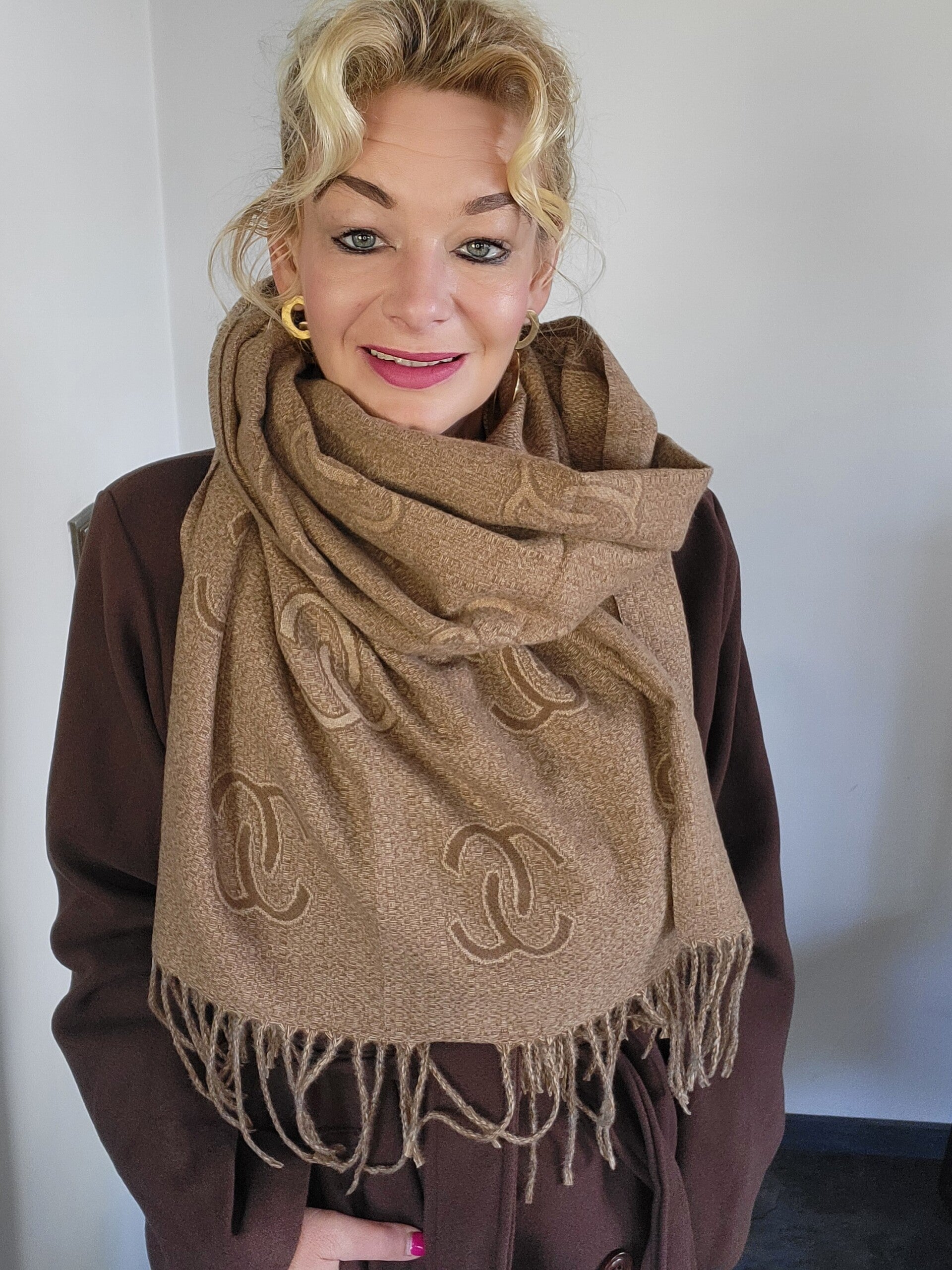 Elegante Sjaal met C-patroontje en Franjes – Kasjmier & Wolmix bruin