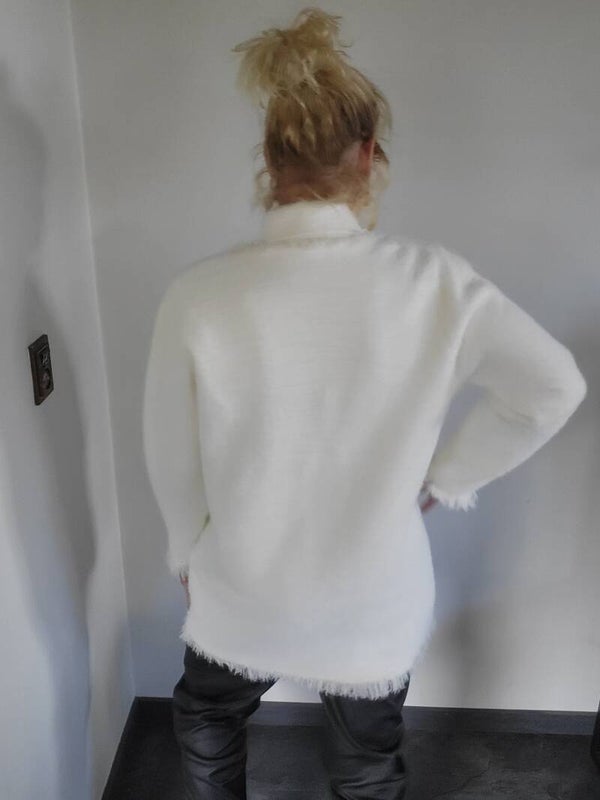 De gouden knopen geven het vest een elegante en stijlvolle touch. Verkrijgbaar in crème en zwart, waardoor je het eenvoudig kunt combineren met zowel een nette broek als een chique jurk.