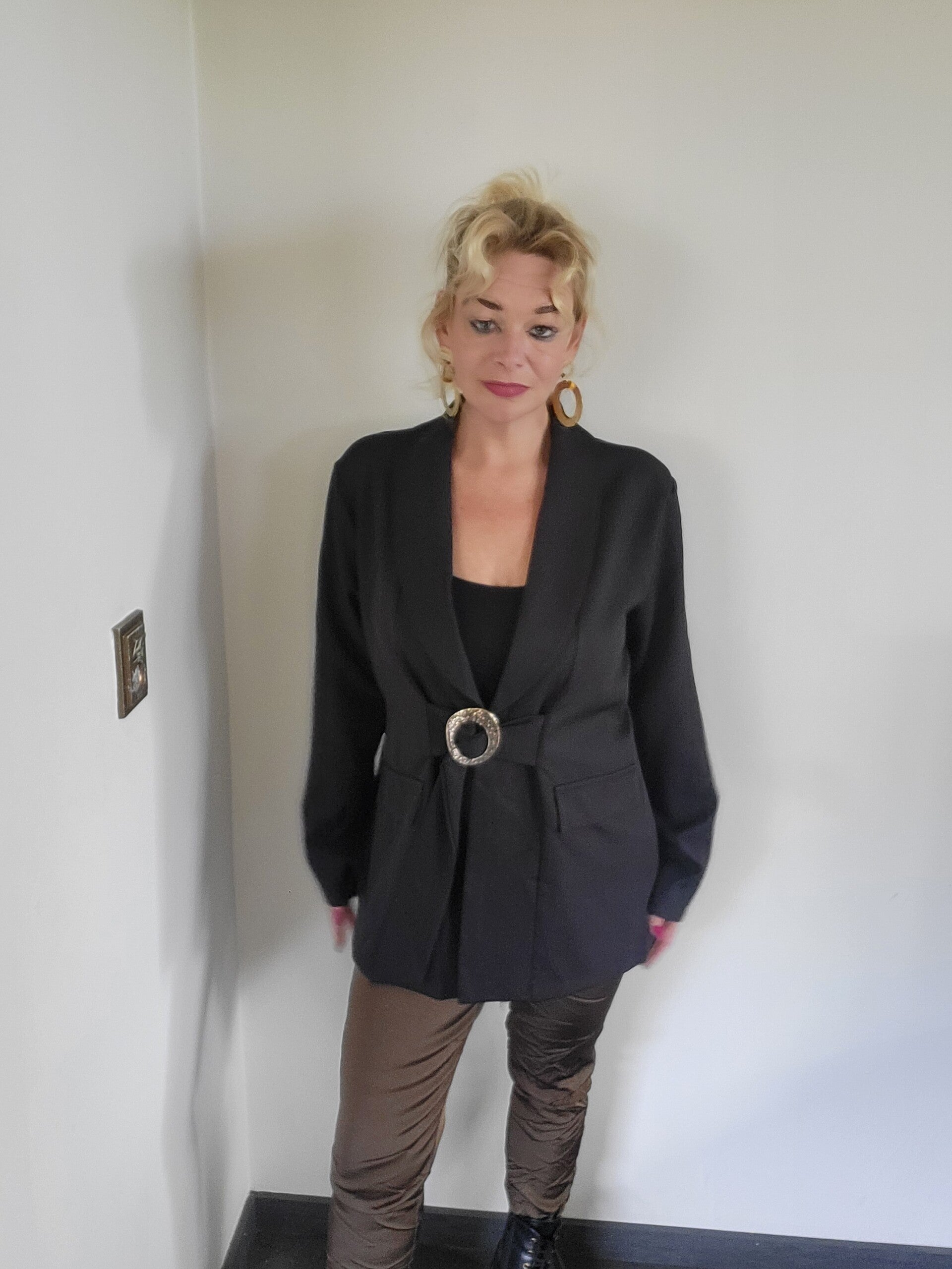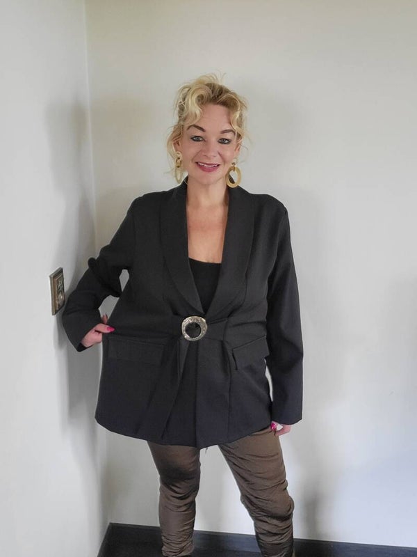 Elegante Blazer met Unieke Gespsluiting – Stijlvol & Comfortabel tot Maat 44 zwart
