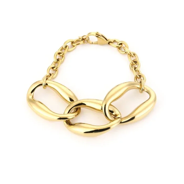 Maak je look compleet met deze goudkleurige XL schakelarmband van hoogwaardige stainless steel.