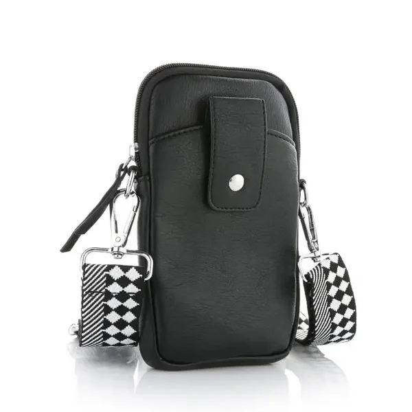 zacht en stijlvol telefoontasje van zwart pu-leer, compact en praktisch van 20x13x2 cm. voorzien van strap en lange band, draagbaar als crossbody of schoudertas. geschikt voor dagelijks gebruik, feestjes en speciale gelegenheden. ideaal om telefoon en kleine essentials veilig bij je te dragen. perfect als cadeau of voor jezelf.
