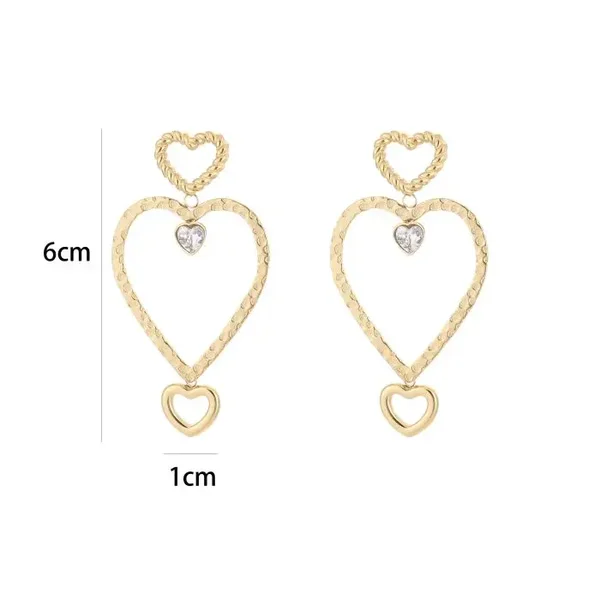 Deze romantische love oorbellen met drie hartjes zijn een prachtig symbool van liefde en stijl. De oorbellen bestaan uit een klein hartje, een groot hartje en nog een klein hartje aan de onderzijde, met in het midden een sprankelend kristal dat het licht op een subtiele manier vangt.
