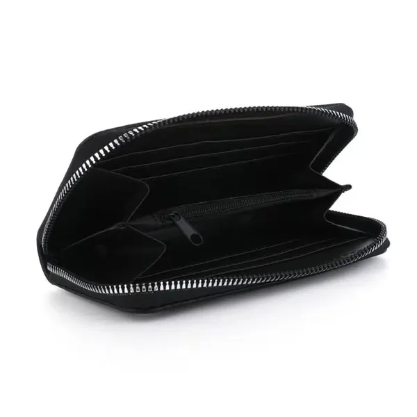 Stoer én praktisch! Deze portemonnee met studs heeft een rits rondom en is perfect voor het opbergen van pasjes, briefgeld en kleingeld. Met een handig formaat van 15 cm breed en 9 cm hoog past hij makkelijk in je tas of jaszak.