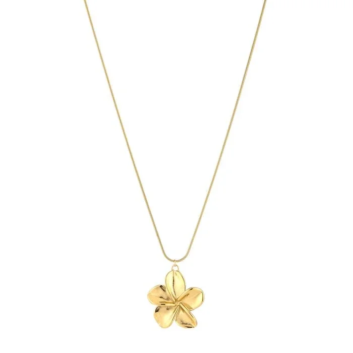 Mooie trendy lange ketting met bloem hanger. Goud gemaakt van stainless steel 70 cm