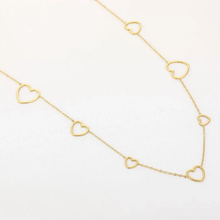 Mooie lange ketting met hartjes. Gemaakt van stainless steel goud en is 75cm