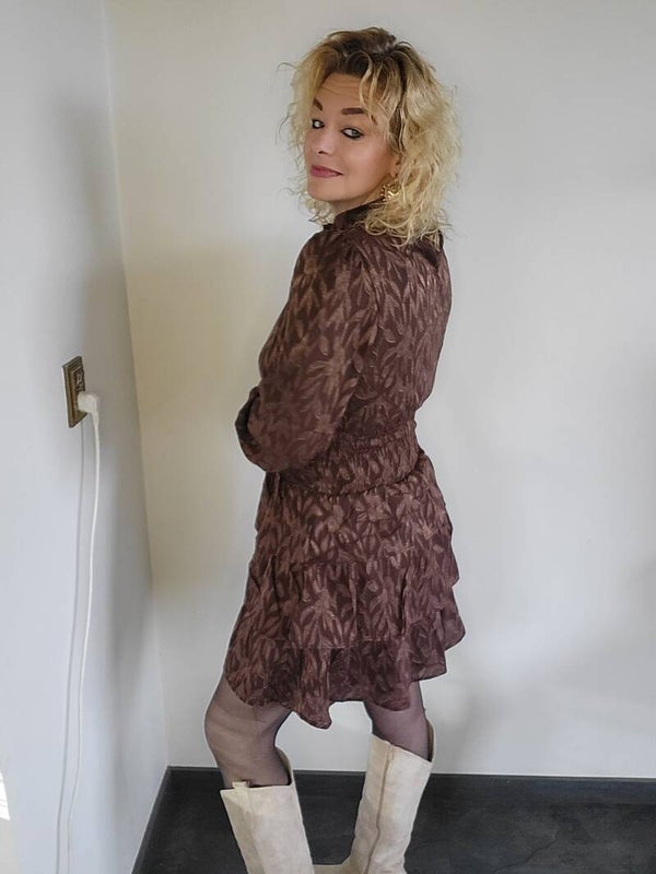 Een prachtig jurkje maat m. Sluit met achter in de nek met een knoopje. En bevat elastiek aan de achterkant.