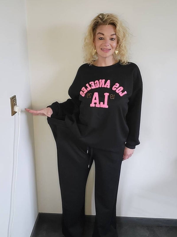 Heerlijk comfortabel comfypak. Met elastische tailleband. Te dragen t/m maat 44-46