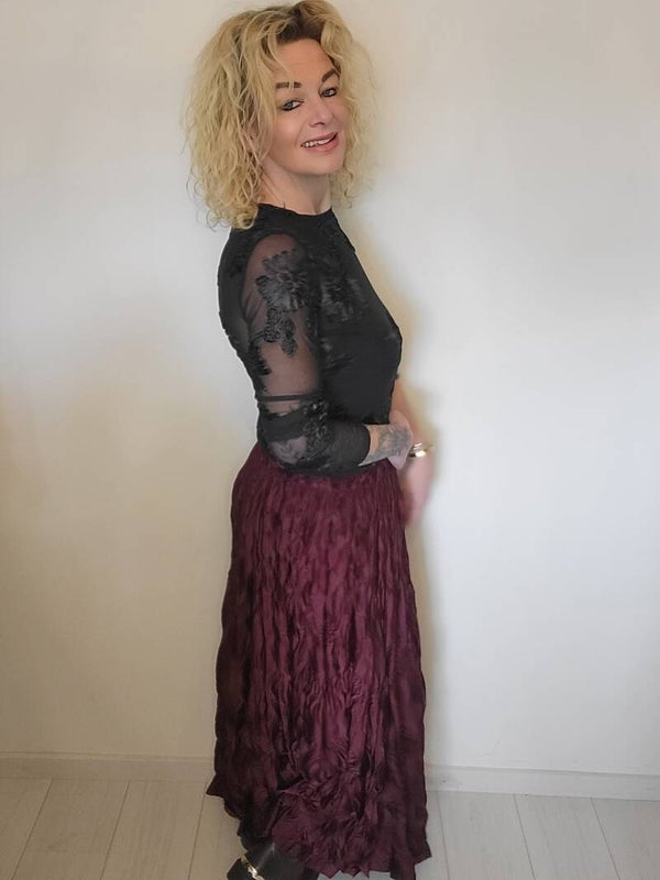 Lange wrinkle rok bordeaux