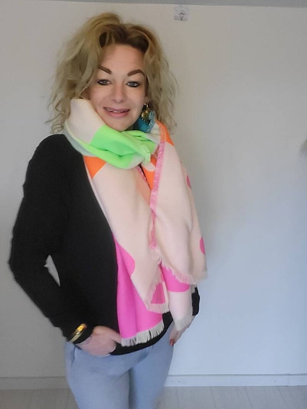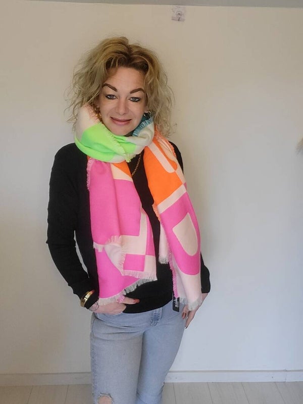 Leuke grote wat dikkere gekleurde sjaal met de tekst forever