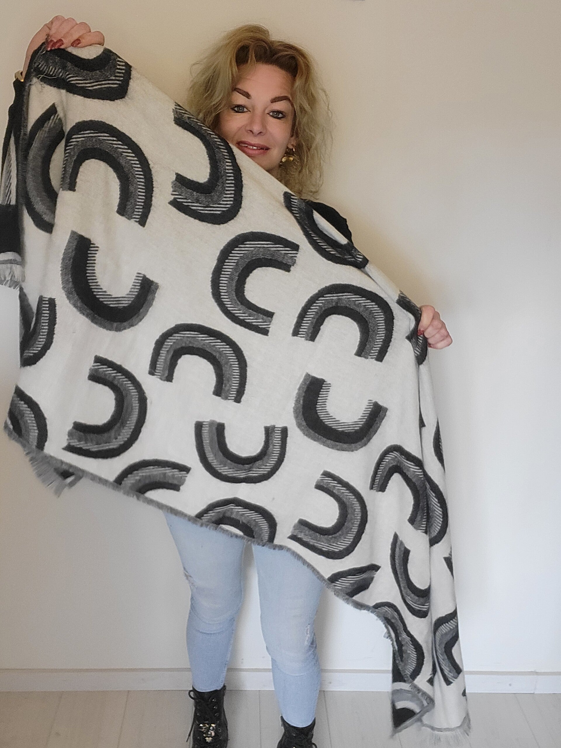 Sjaal boog creme zwart