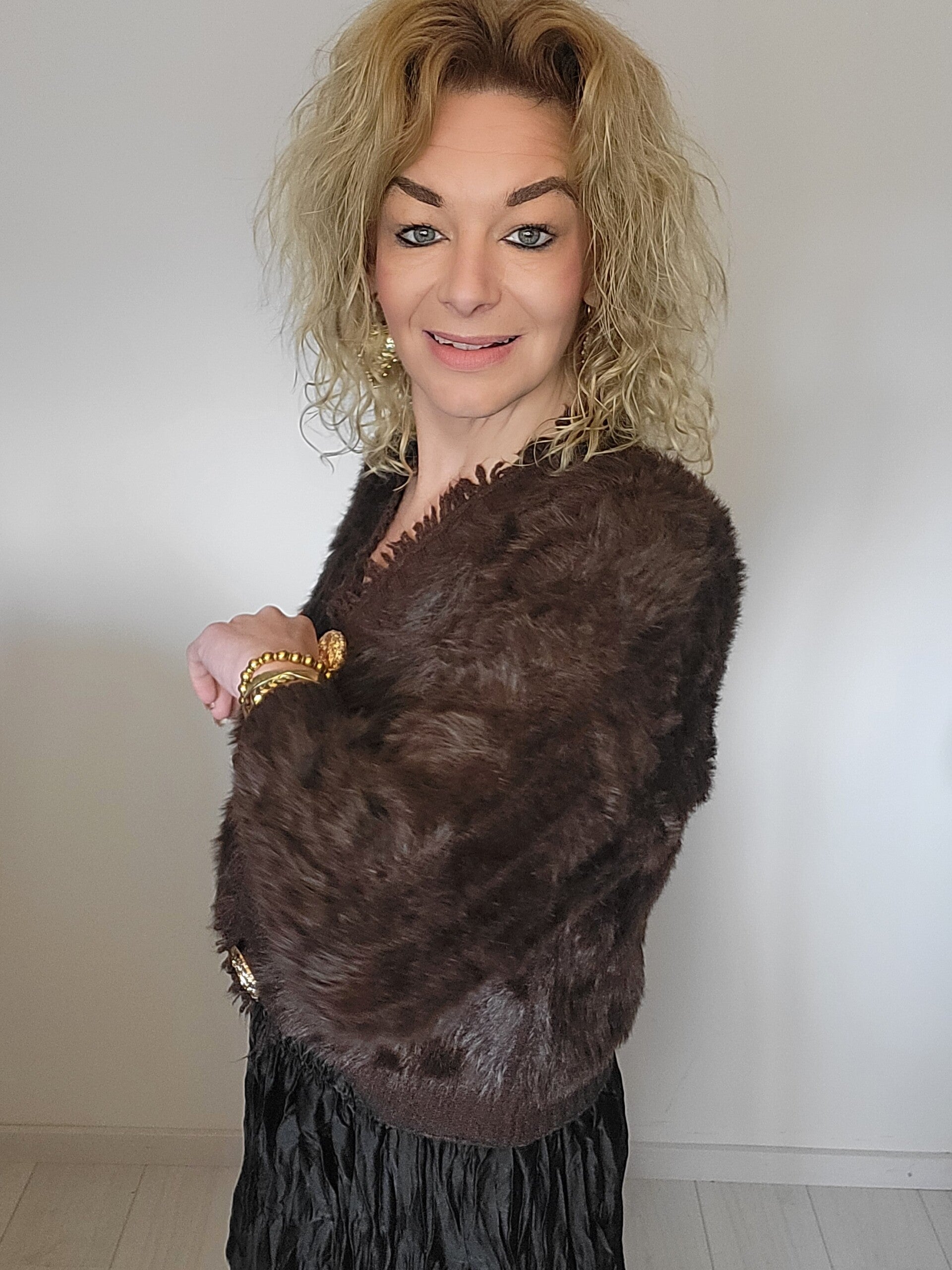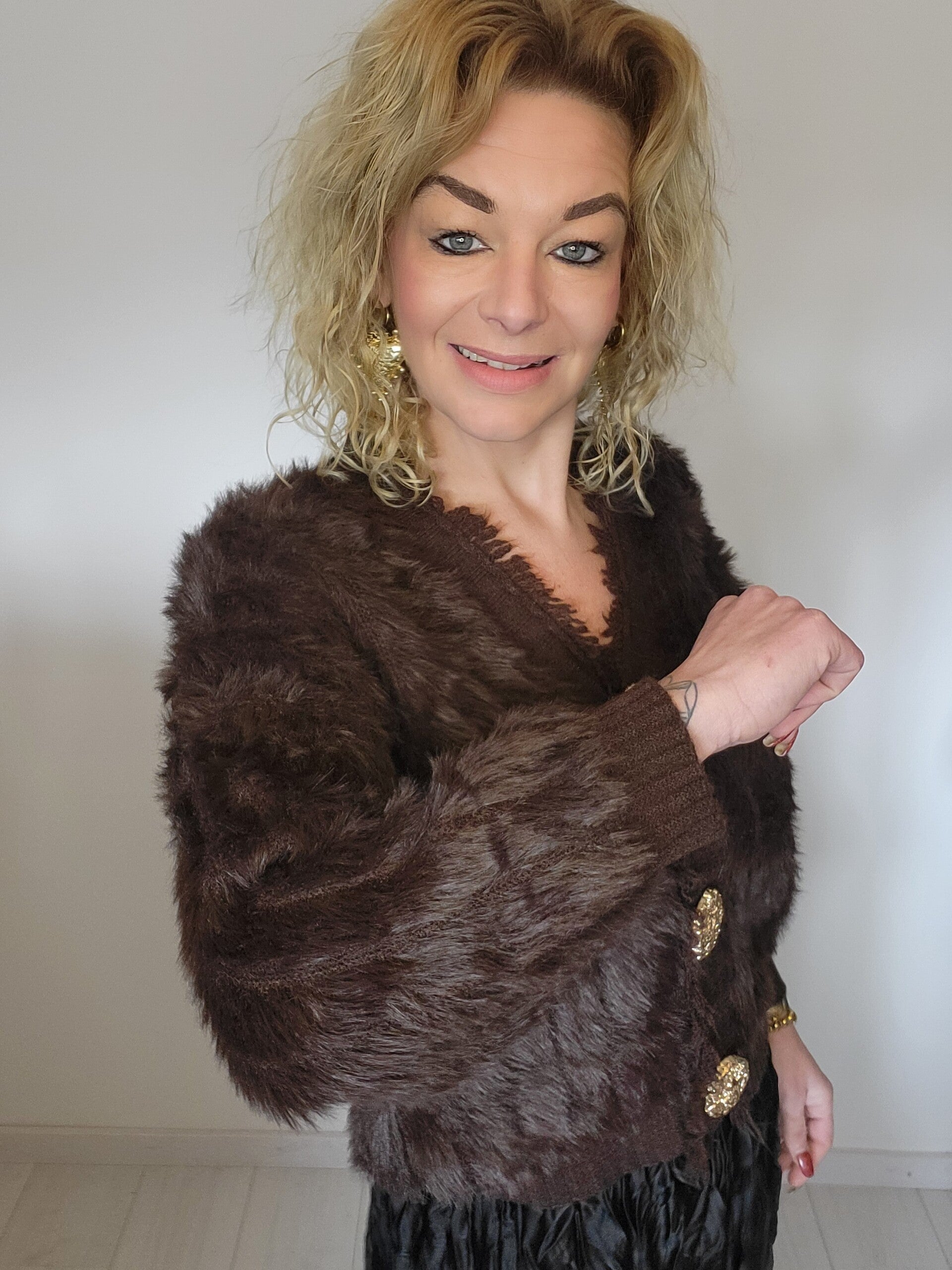 Super gaaf kort vestje met grote gouden knopen. Super zacht en fluffy te dragen t/m maat 42