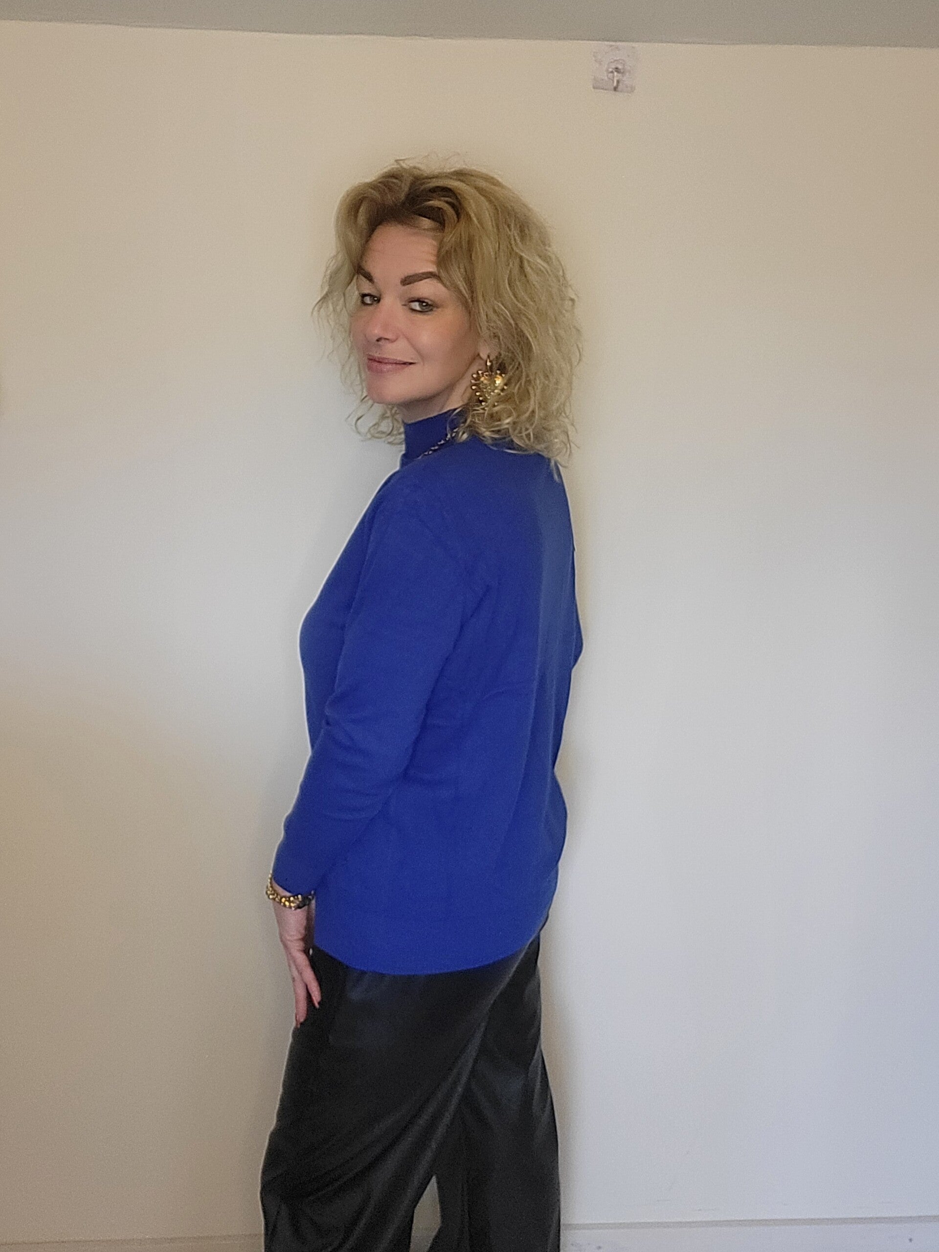 Basis shirt halve col kobalt