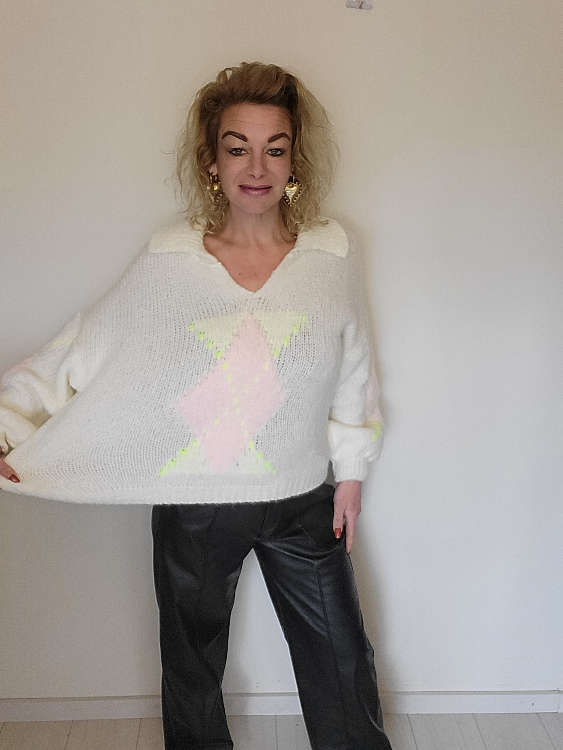 Trui ruit creme