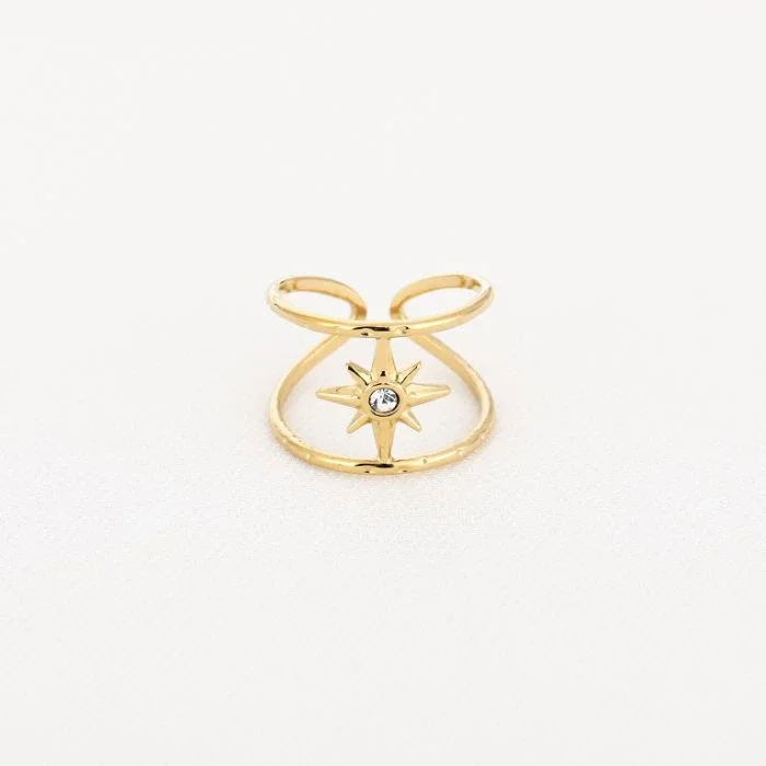 Mooie verstelbare ring rvs goud met zirkonia steen