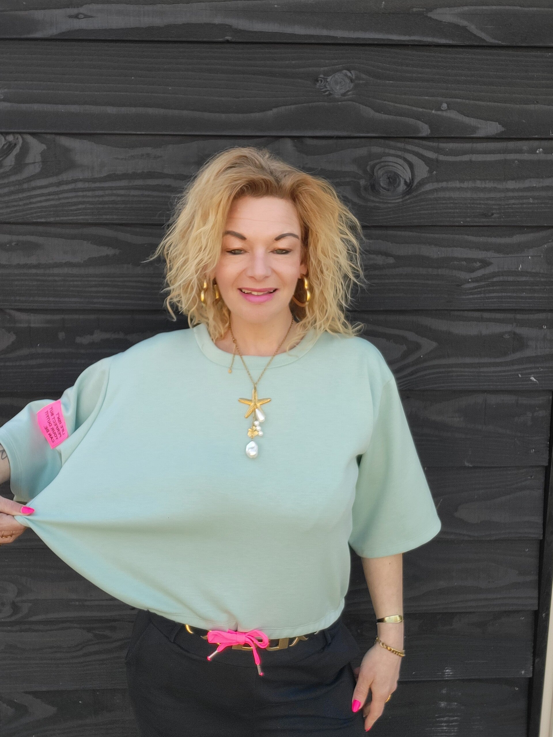 Aan de onderkant zit een handig touwtje, waardoor je ‘m op verschillende manieren kunt dragen: π Ga voor een cropped look door ‘m aan te trekken