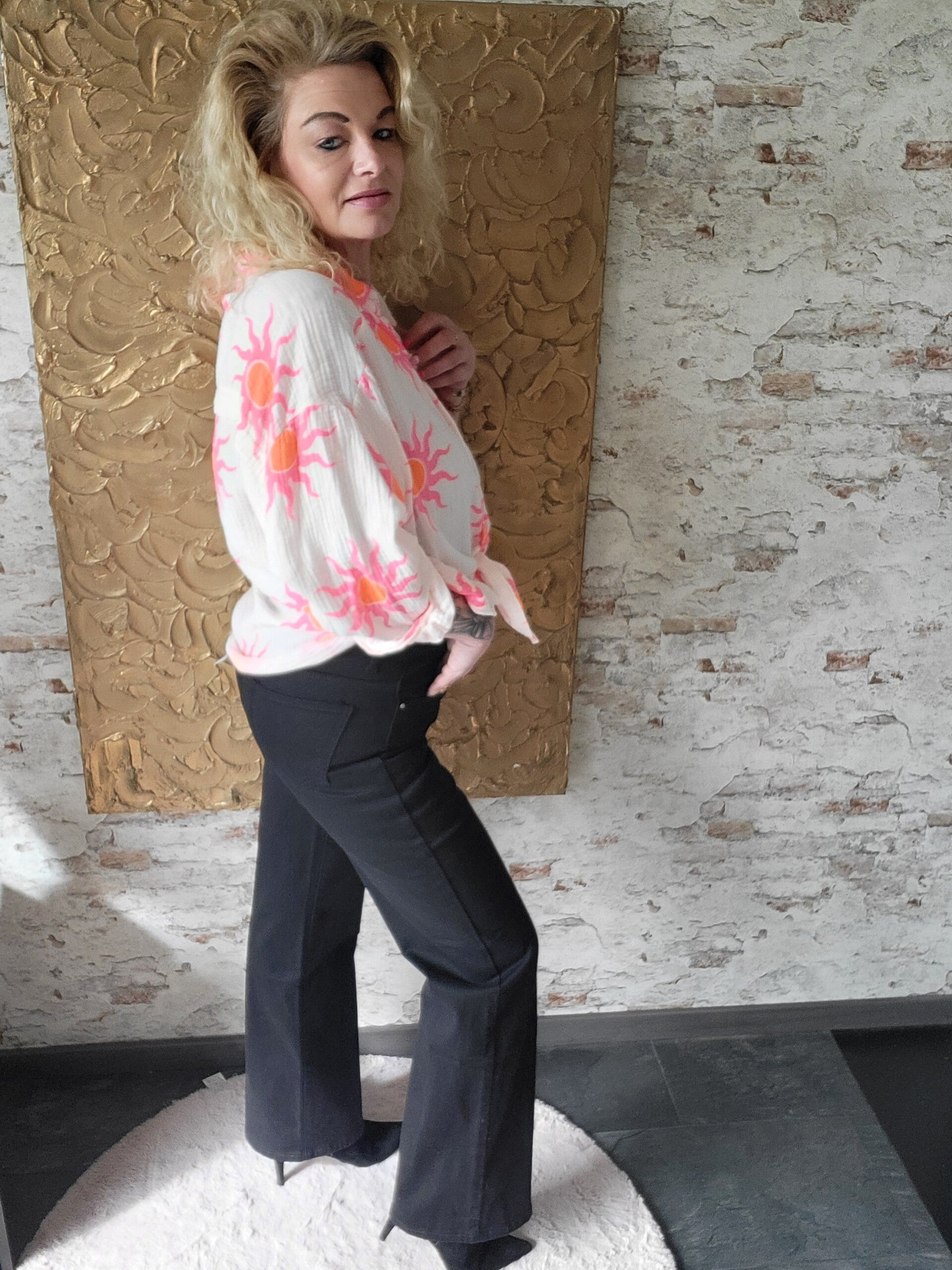 De wide leg pijpen geven de broek een moderne en trendy look. Perfect te combineren met een blouse, sweater of basic top voor een casual maar stijlvolle outfit.