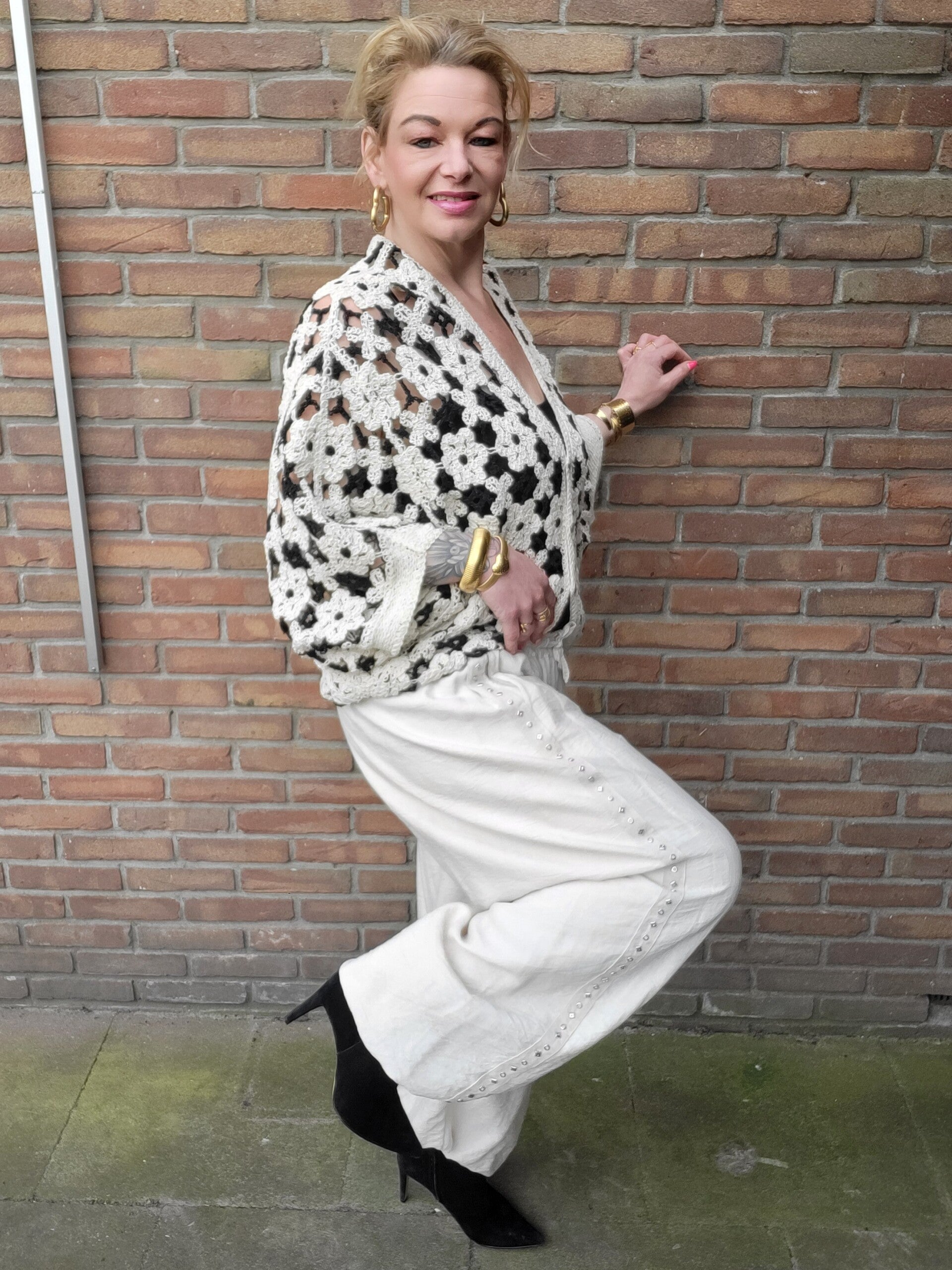 Mooie beige ballon broek met studs langs de pijpen. Bevat een elastische boord en elastiek aan de onderkant. Te dragen t/m maat 42/44
