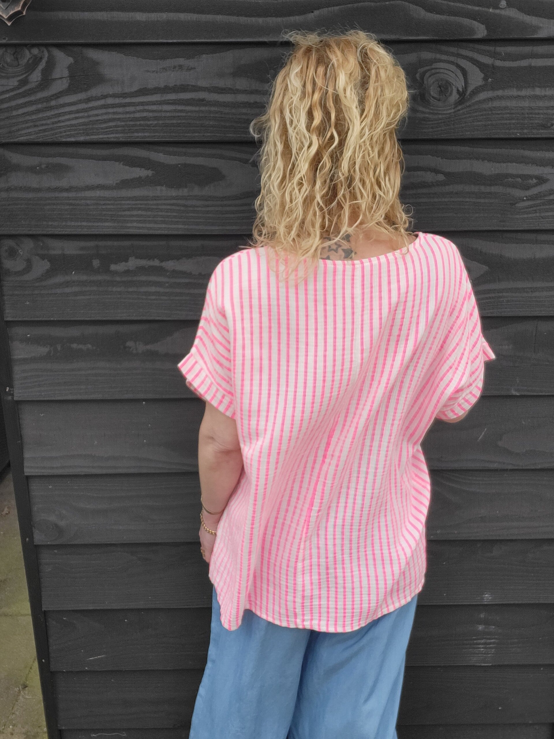 Neon shirt met streep. Katoen te dragen t/m maat 42/44